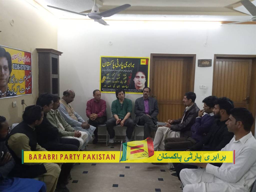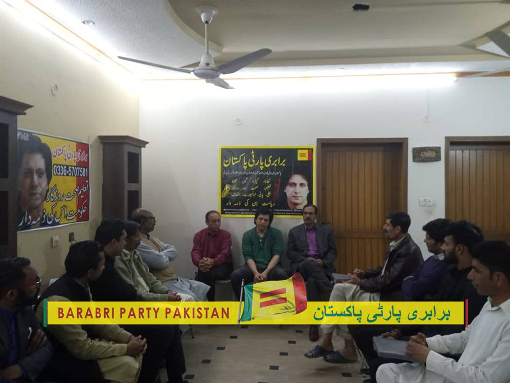مورخہ 29 فروری 2020ء کو برابری پارٹی پاکستان ہفت روزہ میٹنگ پارٹی آفس میں منعقد ہوئی جس میں پارٹی کے چیئرمین جواداحمد نے خصوصی شرکت کی اور پارٹی کے پروگرام پرتفصیلی بات چیت ہوئی۔ میٹنگ میں حاضرین کے ساتھ سوال و جواب کا سلسلہ بھی ہوا۔ برابری پارٹی پاکستان سمجھتی ہے کہ جب تک اس ملک کے محنت کش، مڈل کلاس اور نوجوانوں کی بڑی تعداد متحد ہوکر ایک سیاسی پلیٹ فارم پر نہیں آئے گی جو کہ اس ملک کا تقریباً 99 فیصد ہیں، تب تک پارلیمنٹ میں ایسے ہی اشرافیہ ان کے خلاف قانون سازی کرتے رہیں گے۔ برابری پارٹی پاکستان کا حصہ بنیں 99فیصد کو متحد کرنے میں ہمارا ساتھ دیں۔