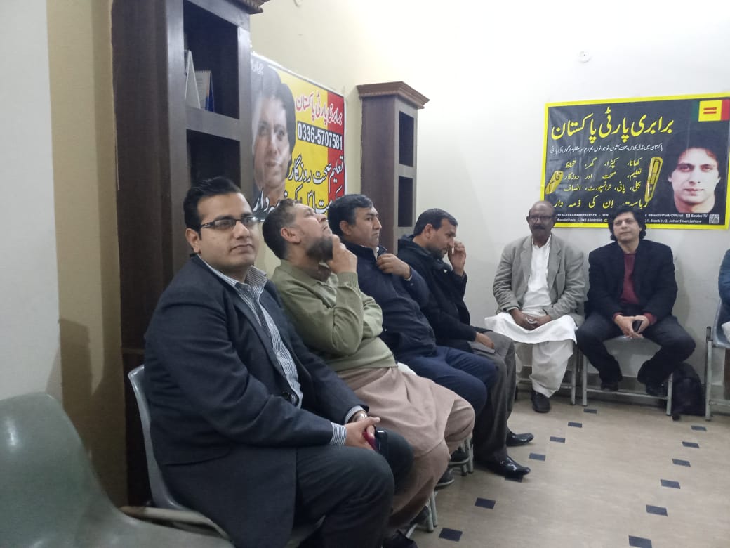 مورخہ 14 فروری 2020ء کو برابری پارٹی پاکستان کی ہفتہ روزہ میٹنگ نئے رابطوں کے ساتھ ہوئی جس میں پارٹی چیئرمین جواداحمد نے خصوصی شرکت کی۔ اس میٹنگ کا مقصد برابری پارٹی پاکستان کے پروگرام اور موجودہ ملکی سیاسی صورتحال پر بات چیت کرنا تھا۔