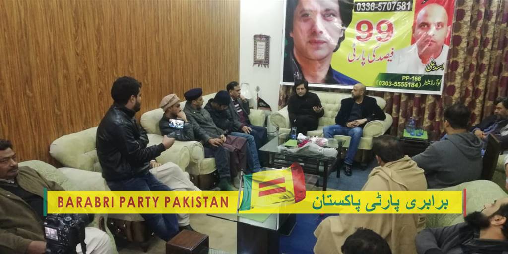 برابری پارٹی پاکستان کی مورخہ 13 جنوری 2020ء کو پارٹی کے ممبر اور کورآرڈینیٹر اسد علی کی رہائیش گاہ پر منعقد ہوئی ۔ اس میٹنگ میں جواداحمد چئیرمین برابری پارٹی پاکستان نے خصوصی شرکت کی اورتمام حاضرین سے سیاسی صورتحال پر بات چیت کی جس پر حاضرین کے ساتھ تفصیلی سوال وجوابات کا سلسلہ ہوا۔ میٹنگ کے بعد تمام حاضرین نے برابری پارٹی پاکستان پروگرام کو سراہا اور اعادہ کیا کہ ہم برابری پارٹی پاکستان کا حصہ بن کر اس پارٹی میں اہم کردار ادا کریں گے۔