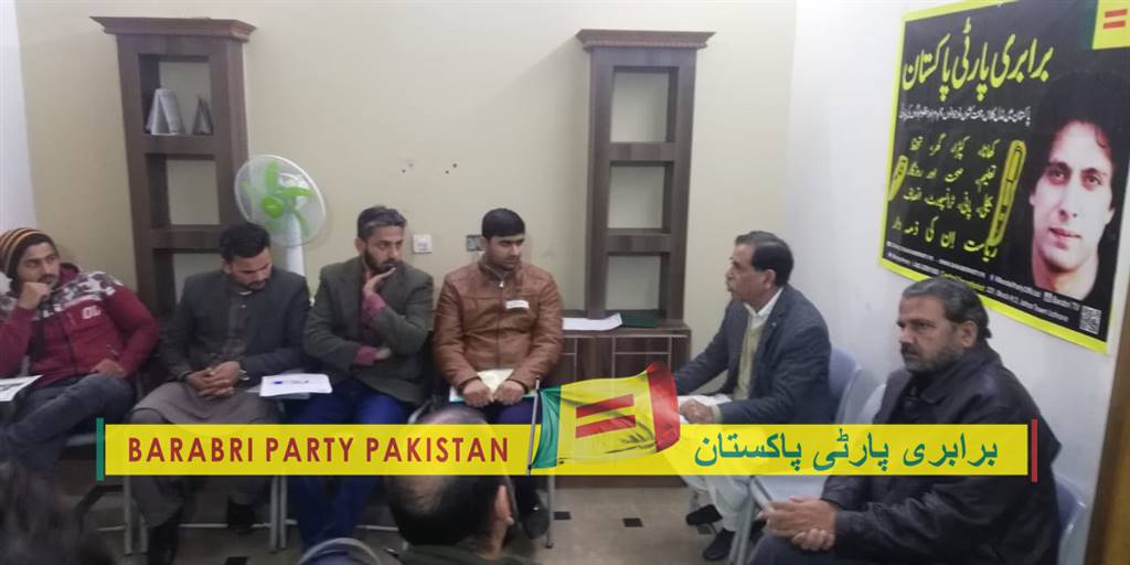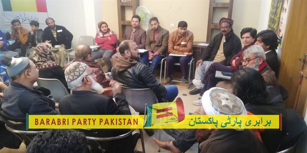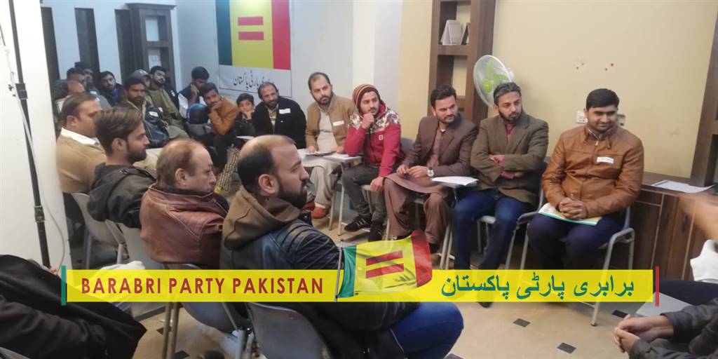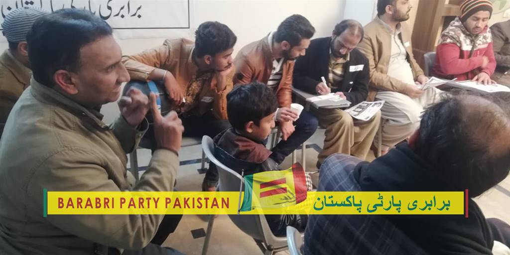 مورخہ 13 دسمبر2019ء کو برابری پارٹی پاکستان کی ہفت وار میٹنگ ہوئی جس میں محنت کش اور مڈل کلاس سے تعلق رکھنے والے دوستوں نے حصہ لیا۔ چیئرمین برابری پارٹی پاکستان جواد احمد نے موجودہ سیاسی صورتحال پر بات چیت کی جس پر حاضرین نے خوب سراہا میٹںگ کے آخر میں سوال و جواب کا سلسلہ ہوا جس کے بعد حاضرین نے پارٹی میں شامل ہوکر تنظیم سازی کرنے کا اعادہ کیا۔